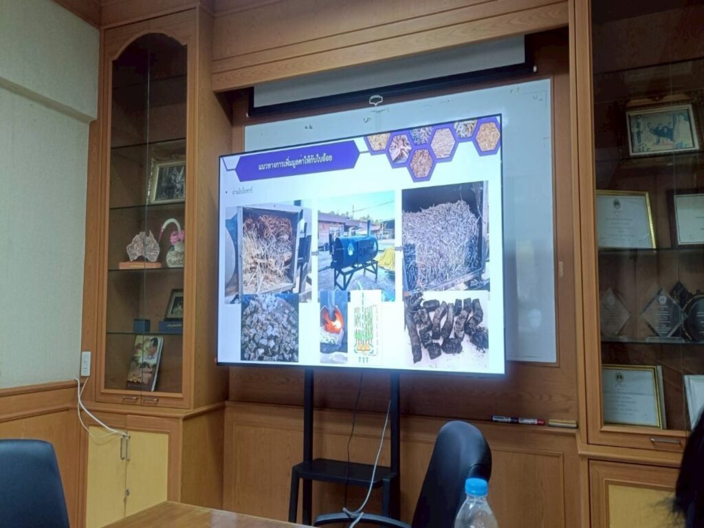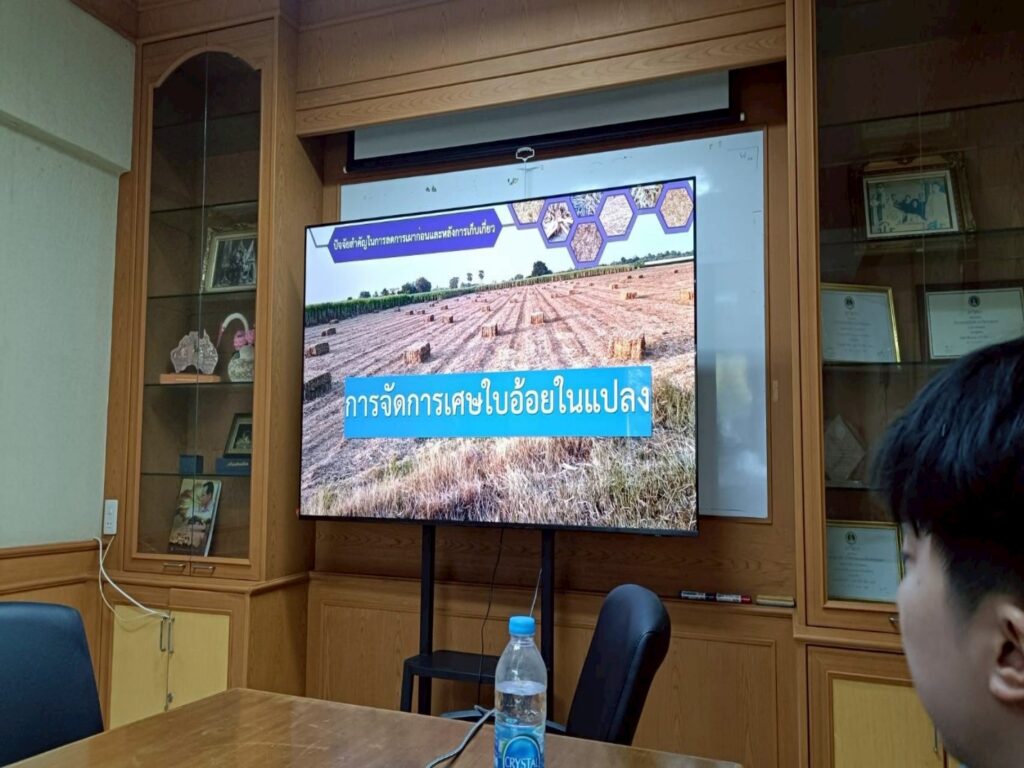วันจันทร์ที่ 8 ธันวาคม 2568 เวลา 10.00 น. นายคมกริช ศาลาน้อย เกษตรจังหวัดขอนแก่น มอบหมายให้นายกิตติกร ไชยเดช นักวิชาการส่งเสริมการเกษตรชำนาญการ กลุ่มยุทธศาสตร์และสารสนเทศ พร้อมด้วยนางสาวณัฎฐนิชา มีสูงเนิน นักวิชาการส่งเสริมการเกษตรชำนาญการ กลุ่มอารักขาพืช คณะทำงาน Quick win ที่ 8 หัวข้อ วัสดุเหลือใช้ทางการเกษตรสามารถสร้างรายได้มากกว่า 10% พร้อมกับเกษตรอำเภอน้ำพองและเจ้าหน้าที่ เข้าร่วมหารือการบริหารจัดการเศษวัสดุเหลือใช้ทางการเกษตร รวมถึงการจัดการภายในแปลงและการจัดการภายนอกแปลง การแปรรูปเพื่อเพิ่มมูลค่า โดยเฉพาะใบอ้อยเพื่อหาแนวทางลดจุดความร้อนในพื้นที่และเสนอทางเลือกให้เกษตรกร ณ สาขาวิศวกรรมเกษตร คณะวิศวกรรมศาสตร์ มหาวิทยาลัยขอนแก่น