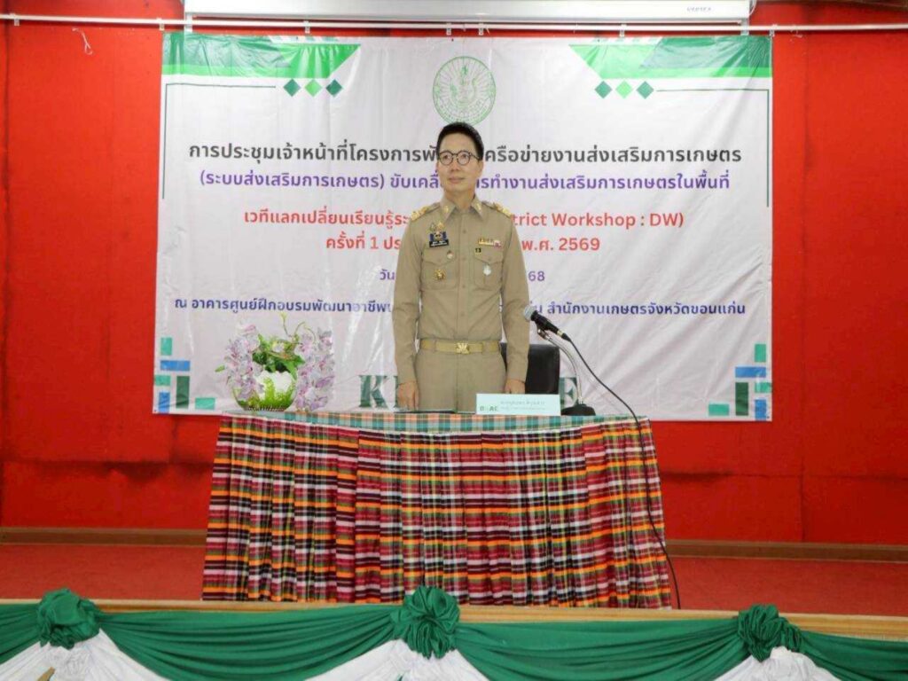 วันจันทร์ที่ 15 ธันวาคม 2568 เวลา 08.30 น. นายคมกริช ศาลาน้อย เกษตรจังหวัดขอนแก่น พร้อมด้วยเจ้าหน้าที่จัดเวทีแลกเปลี่ยนเรียนรู้ระดับอำเภอ (District Workshop : DW) ครั้งที่ 1 ประจำปีงบประมาณ พ.ศ. 2569 ตามระบบส่งเสริมการเกษตร (T&V System) โดยมีวัตถุประสงค์เพื่อให้เจ้าหน้าที่ได้แลกเปลี่ยนเรียนรู้ ชี้แจงแนวทางปฏิบัติงาน และร่วมกันแก้ไขปัญหาอุปสรรคต่างๆ รวมถึงเพื่อสร้างความเข้าใจในการจัดการเศษวัสดุเหลือใช้ทางการเกษตรเพื่อลดการเผาอย่างยั่งยืน สำหรับกิจกรรมภายในงาน ประกอบด้วย การบรรยายหัวข้อ “การถอดบทเรียนจากประสบการณ์ทรงคุณค่า แนวทางปฏิบัติสู่ความเป็นเลิศในงานส่งเสริมการเกษตร” โดย นายทรงพันธ์ จันทร์สว่าง อดีตเกษตรจังหวัดขอนแก่น การชี้แจงโครงการส่งเสริมการเกษตร ประจำปีงบประมาณ 2569 และการขับเคลื่อนโครงการตามตัวชี้วัด การขับเคลื่อน”11 Quick Win” จังหวัดขอนแก่นและกิจกรรม Workshop ภายใต้หัวข้อ “แนวทางการจัดการเศษวัสดุเหลือใช้ทางการเกษตรเพื่อสร้างรายได้ ลดการเผา อย่างยั่งยืน” การจัดเวทีในครั้งนี้ มุ่งหวังให้เจ้าหน้าที่ได้รับองค์ความรู้ใหม่ๆ เพื่อนำกลับไปพัฒนางานในพื้นที่ ให้บริการเกษตรกรได้อย่างมีประสิทธิภาพ และร่วมกันขับเคลื่อนภาคการเกษตรของจังหวัดขอนแก่นให้มีความเข้มแข็งต่อไป โดยมีนายยุทธพร พิรุณสาร รองผู้ว่าราชการจังหวัดขอนแก่น ให้เกียรติเป็นประธานในพิธีเปิด พร้อมเยี่ยมบูธนิทรรศการ การขับเคลื่อน”11 Quick Win” จังหวัดขอนแก่น บูธการจัดการเศษวัสดุเหลือใช้ทางการเกษตร ของสำนักงานเกษตรจังหวัด และบูธผลงานวิจัยจากคณะวิศวกรรมศาสตร์ มหาวิทยาลัยขอนแก่น ในการจัดการเศษใบอ้อยและวัสดุเหลือใช้อื่นๆ พร้อมทั้งมอบนโยบายมอบนโยบายเร่งด่วนขับเคลื่อน “11 Quick Win” และการรับมือ PM 2.5 ด้วยการจัดการเศษวัสดุทางการเกษตร เพื่อสร้างรายได้และลดการเผาอย่างยั่งยืน ให้แก่เจ้าหน้าที่ที่ร่วมงานในครั้งนี้ ณ ศูนย์ฝึกอบรมพัฒนาอาชีพเกษตรกรจังหวัดขอนแก่น สำนักงานเกษตรจังหวัดขอนแก่น อำเภอเมืองขอนแก่น จังหวัดขอนแก่น