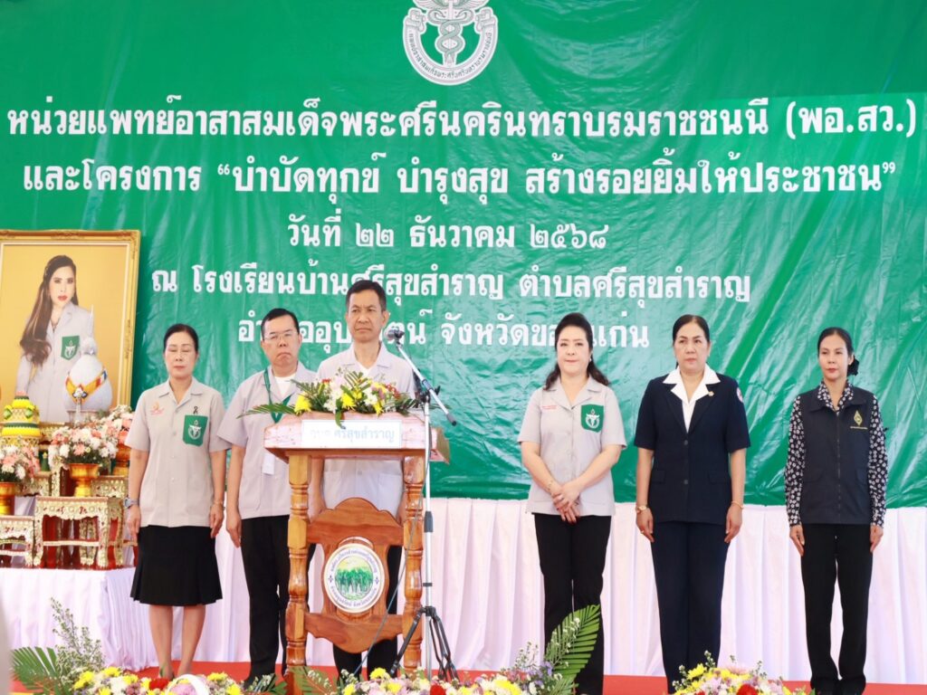 จังหวัดขอนแก่น (22 ธันวาคม 2568) – เมื่อเวลา 09.30 น. นายคมกริช ศาลาน้อย เกษตรจังหวัดขอนแก่น ร่วมลงพื้นที่ปฏิบัติงานใน “หน่วยแพทย์เคลื่อนที่ พอ.สว.” และโครงการ “หน่วยบำบัดทุกข์ บำรุงสุข สร้างรอยยิ้มให้กับประชาชน” ณ โรงเรียนบ้านศรีสุขสำราญ ต.ศรีสุขสำราญ อ.อุบลรัตน์ จ.ขอนแก่น โดยมี นายพันธ์เทพ เสาโกศล รองผู้ว่าราชการจังหวัดขอนแก่น เป็นประธานในพิธี