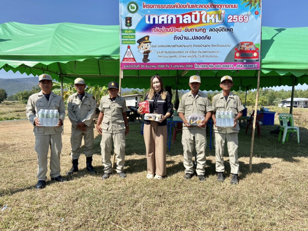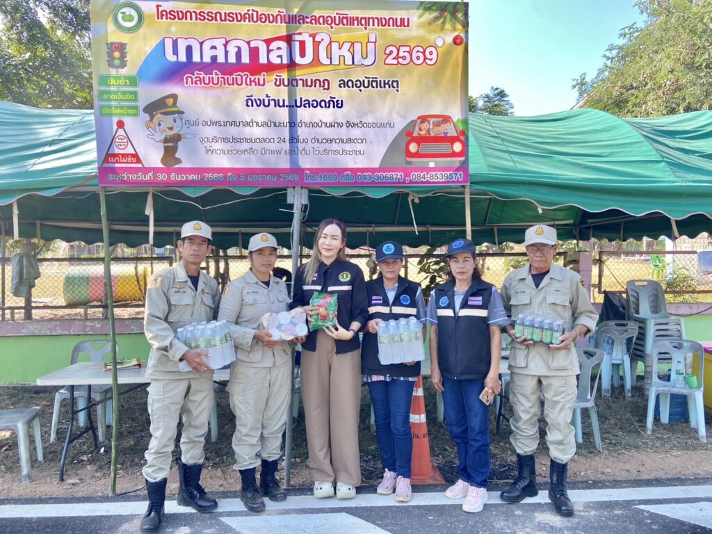 31 ธ.ค.68 นายสมศักดิ์ กันภัย เกษตรอำเภอบ้านฝาง มอบหมายให้นางสาวอรสา สิทธิไกรพงษ์ นักวิชาการส่งเสริมการเกษตรชำนาญการ ออกตรวตเยี่ยมและมอบเครื่องดื่ม น้ำดื่ม เป็นขวัญกำลังใจแก่เจ้าหน้าที่ผู้ปฏิบัติงานอำนวยความสะดวกให้กับประชาชนที่สัญจรในช่วงวันหยุดเทศกาลปีใหม่ 2569 ณ จุดบริการประชาชนบ้านกระเดื่อง ม.1 , บ้านคำหัวช้าง ม.3 และบ้านแก่นเท่า ม.5 ตำบลป่ามะนาว อำเภอบ้านฝาง จังหวัดขอนแก่น