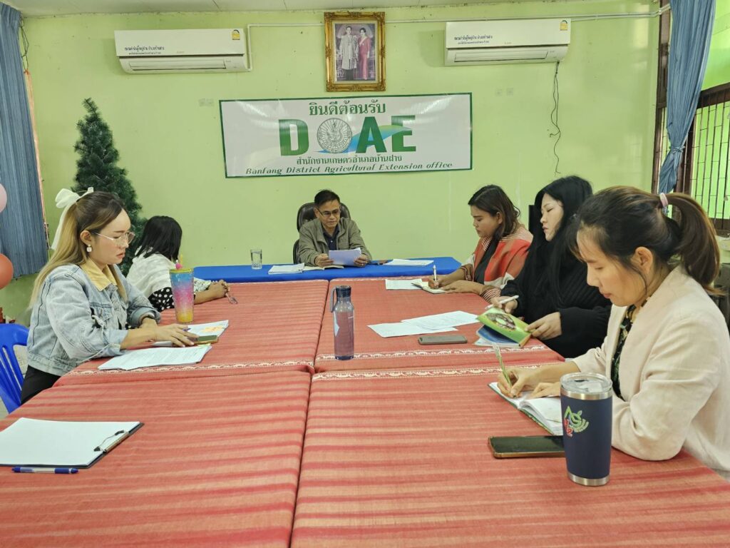 วันที่ 8 มกราคม 2569 นายสมศักดิ์ กันภัย เกษตรอำเภอบ้านฝาง ประชุมเจ้าหน้าที่ประจำเดือน มกราคม 2569 เพื่อวางแผนการดำเนินงานและสรุปผลการดำเนินงานที่ผ่านมา ณ ห้องประชุมสำนักงานเกษตรอำเภอบ้านฝาง