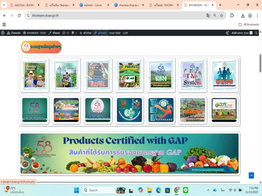 วันพฤหัสบดีทึ่ 13 พฤศจิกายน 2568 เวลา 08.30 น. นายคมกริช ศาลาน้อย เกษตรจังหวัดขอนแก่น มอบหมายให้นายทรงเกียรติ แฝงสาเคน เจ้าพนักงานธุรการ กลุ่มยุทธศาสตร์และสารสนเทศ เข้าร่วมการอบรมการพัฒนาเว็บไซต์ด้วยโปรแกรม Word Press ซึ่งกำหนดจัดขึ้นระหว่างวันที่ 13-14 พฤศจิกายน 2568 วัตถุประสงค์เพื่อพัฒนาทักษะของเจ้าหน้าที่ผู้รับผิดชอบระดับจังหวัดในเขตภาคตะวันออกเฉียงเหนือ ในการพัฒนาเว็บไซต์ของสำนักงานเกษตรจังหวัดและอำเภอให้มีข้อมูลที่เป็นปัจจุบัน ถูกต้อง สามารถเผยแพร่และประชาสัมพันธ์ต่อไป โดยมีนายกมล โสพัฒน์ ผู้อำนวยการสำนักงานส่งเสริมและพัฒนาการเกษตรที่ 4 จังหวัดขอนแก่น เป็นประธานเปิดอบรม ณ ห้องประชุมสำนักงานส่งเสริมและพัฒนาการเกษตรที่ 4 จังหวัดขอนแก่น