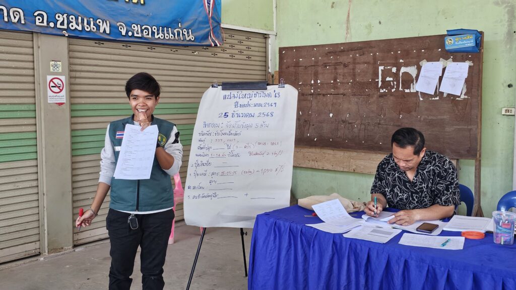 วันที่ 25 ธันวาคม 2568 เวลา 09.00 น. เวลา 09.00 น. นางบุตรดี สิงห์คร นักวิชาการส่งเสริมการเกษตรชำนาญการ และนางสาวขนิษฐา อินอิ่ม นักวิชาการส่งเสริมการเกษตรชำนาญการ จัดเวทีเก็บข้อมูล วิเคราะห์ ประมวลผล ภายใต้โครงการระบบส่งเสริมการเกษตรแบบแปลงใหญ่เพื่อปรับเพิ่มผลิตภาพการผลิต (ครั้งที่ 1) โดยวิเคราะห์ประเมินศักยภาพ 5 ด้าน ได้แก่ การลดต้นทุนการผลิต การเพิ่มประสิทธิภาพการผลิต การพัฒนาคุณภาพสินค้า การบริหารจัดการ และการตลาด เพื่อให้ทราบถึงสถานะปัจจุบันของแปลงใหญ่ และนำข้อมูลที่ได้จากการวิเคราะห์มาวางแผน พัฒนาการผลิตและแผนการตลาด เป้าหมายในการดำเนินการได้แก่ กลุ่มแปลงใหญ่ข้าวโพดเลี้ยงสัตว์ หมู่ 1 บ้านโนนสะอาด ตำบลโนนสะอาด อำเภอชุมแพ จังหวัดขอนแก่น จัดกิจกรรม ณ ศาลาเอนกประสงค์บ้านโนนสะอาด หมู่ 1 ตำบลโนนสะอาด อำเภอชุมแพ จังหวัดขอนแก่น