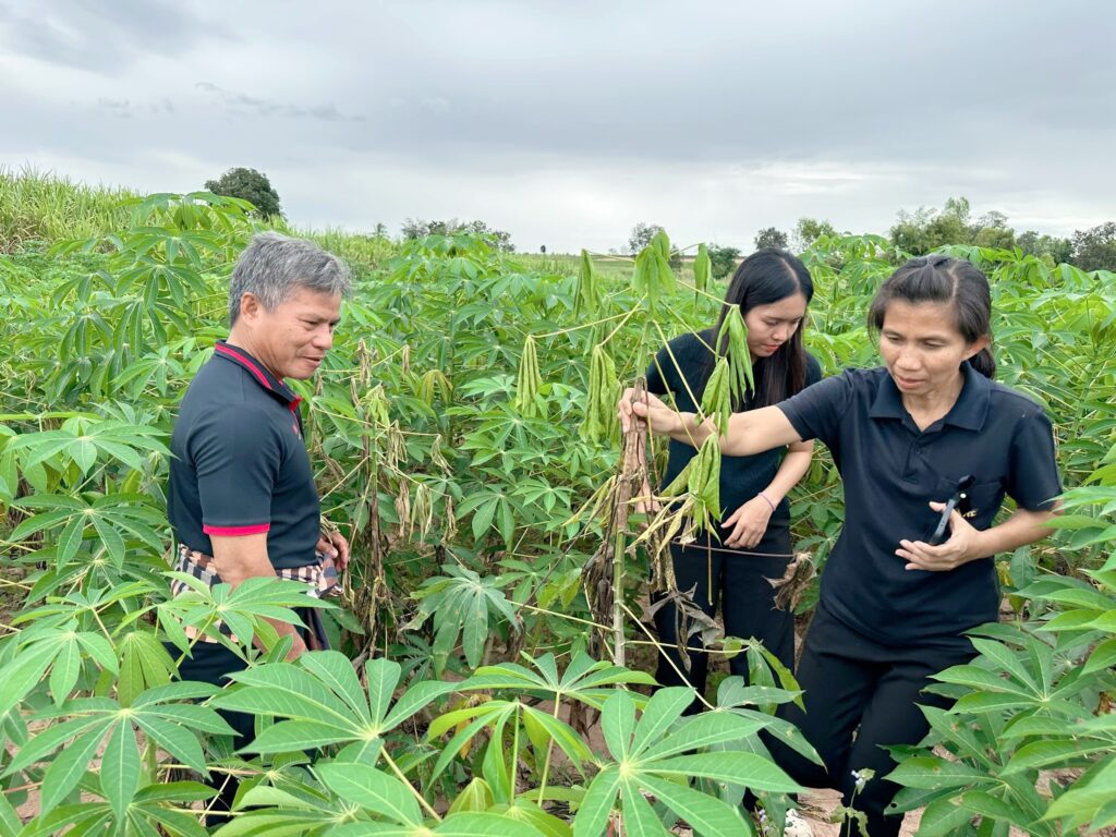 วันที่ 5 พฤศจิกายน 2568 นางยอดขวัญ สามะ เกษตรอำเภอเขาสวนกวาง มอบหมายให้ นางสาวแสงเดือน ศรีสุพัฒน์ นักวิชาการส่งเสริมการเกษตรชำนาญการ นางสาวพรสุดา ไชยโชติ และนางสาวณิชากร บูรณะกิติ นักวิชาการส่งเสริมการเกษตรปฏิบัติการ ลงพื้นที่เยี่ยมเยียนเกษตรกรผู้ปลูกมันสำปะหลังพันธุ์อิทธิ 1 ของเกษตรกรในพื้นที่ หมู่ 4 ตำบลโนนสมบูรณ์ อำเภอเขาสวนกวาง จังหวัดขอนแก่น