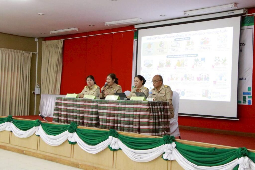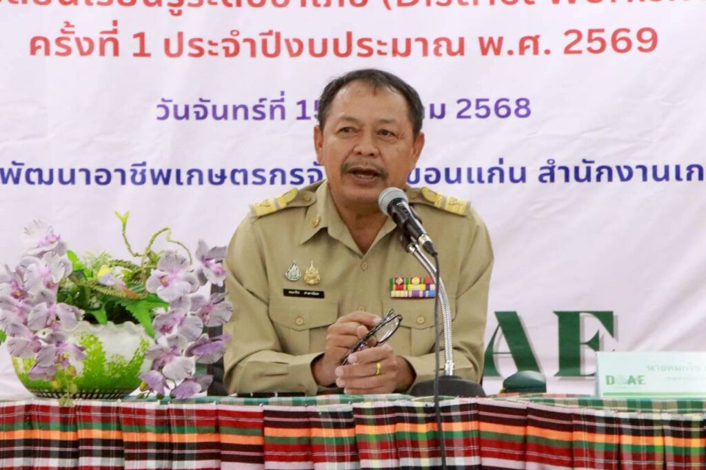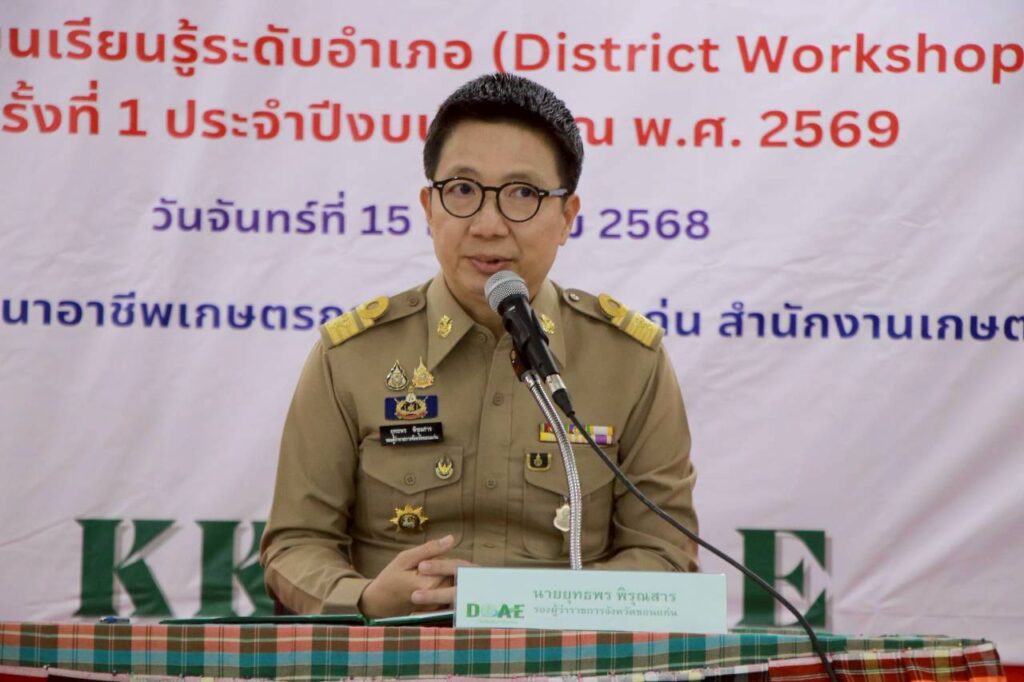 วันที่ 15 ธันวาคม 2568 นางยอดขวัญ สามะ เกษตรอำเภอเขาสวนกวาง พร้อมด้วยเจ้าหน้าที่สำนักงานเกษตรอำเภอเขาสวนกวาง เข้าร่วมเวทีแลกเปลี่ยนเรียนรู้ระดับอำเภอ (District Workshop : DW) ครั้งที่ 1 ประจำปีงบประมาณ 2569 การชี้แจงโครงการส่งเสริมการเกษตร ประจำปีงบประมาณ 2569 และการขับเคลื่อน “11 Quick Win” ภายใต้หัวข้อ “แนวทางการจัดการเศษวัสดุเหลือใช้ทางการเกษตรเพื่อสร้างรายได้ ลดการเผา อย่างยั่งยืน” โดยมีนายยุทธพร พิรุณสาร รองผู้ว่าราชการจังหวัดขอนแก่น เป็นประธานในพิธีเปิด พร้อมทั้งมอบนโยบายเร่งด่วนขับเคลื่อน “11 Quick Win” และการรับมือ PM 2.5 จัดการเศษวัสดุเหลือใช้ทางการเกษตรเพื่อสร้างรายได้ ลดการเผา อย่างยั่งยืน ณ ศูนย์ฝึกอบรมพัฒนาอาชีพเกษตรกรจังหวัดขอนแก่น อำเภอเมืองขอนแก่น จังหวัดขอนแก่น
