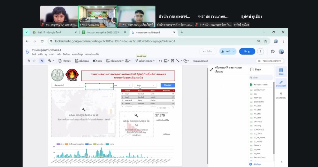 วันที่ 16-17 ธันวาคม 2568 นางยอดขวัญ สามะ เกษตรอำเภอเขาสวนกวาง มอบหมายให้ นางสาวแสงเดือน ศรีสุพัฒน์ นักวิชาการส่งเสริมการเกษตรชำนาญการ และนายจักรกฤษณ์ ไชยยศ นักวิชาการส่งเสริมการเกษตรปฏิบัติการ เข้าร่วมอบรมเชิงปฏิบัติการจัดทำแผนที่ประเมินความเสี่ยงเชิงพื้นที่เกษตรและการสร้าง Looker Studio เพื่อประยุกต์ใช้ความร้อนสะสม (Hotspot) พื้นที่เสี่ยงภัยแล้ง พื้นที่เสี่ยงน้ำท่วมซ้ำซากในพื้นที่การเกษตร เพื่อใช้วางแผนเชิงรุกด้านการเกษตร ปี 2569ผ่านระบบประชุมออนไลน์ Zoom Meeting ณ สำนักงานเกษตรอำเภอเขาสวนกวาง จังหวัดขอนแก่น