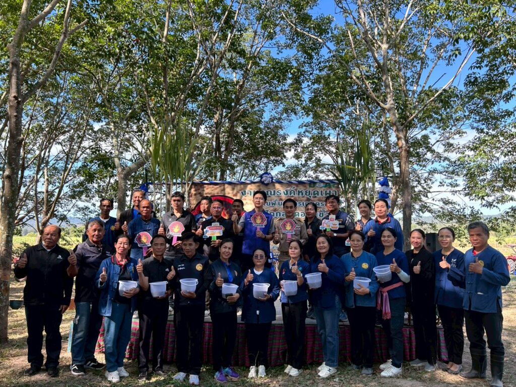 วันที่ 22 ธันวาคม 2568 นางยอดขวัญ สามะ เกษตรอำเภอเขาสวนกวาง พร้อมด้วยเจ้าหน้าที่สำนักงานเกษตร อำเภอเขาสวนกวาง ดำเนินการจัดงานรณรงค์ “การหยุดเผาในพื้นที่การเกษตรและไถกลบตอซังข้าว ประจำปีงบประมาณ 2569” โดยมี นายสรันย์ พานจันทร์ นายอำเภอเขาสวนกวาง เป็นประธานในพิธีเปิดงาน พร้อมด้วย หัวหน้าส่วนราชการ กำนัน ผู้ใหญ่บ้าน อาสาสมัครเกษตร และเกษตรกรจำนวน 100 คน เข้าร่วมกิจกรรม การจัดงานในครั้งนี้มีวัตถุประสงค์เพื่อเน้นย้ำถึงความสำคัญของการลดการเผาในพื้นที่เกษตรกรรม อันเป็นมาตรการสำคัญ สร้างความตระหนักรู้ให้กับเกษตรกรถึงผลกระทบที่เกิดจากการเผาในพื้นที่การเกษตร ซึ่งไม่เพียงแต่ทำลายคุณภาพดิน แต่ยังส่งผลเสียต่อสุขภาพประชาชนและสิ่งแวดล้อม โดยเฉพาะปัญหาฝุ่นละอองขนาดเล็ก (PM 2.5) ที่เป็นภัยเงียบต่อสุขภาพ ภายในงานมีการจัดกิจกรรม ดังนี้ 1. การสาธิตการทำปุ๋ยหมักจากเศษวัสดุเหลือใช้ทางการเกษตร จากสถานีพัฒนาที่ดินจังหวัดขอนแก่น เพื่อเป็นทางเลือกใหม่ในการจัดการเศษวัสดุทางการเกษตรอย่างยั่งยืน 2. การสาธิตการไถกลบตอซังข้าว ควบคู่กับการหว่าน ปอเทือง เพื่อใช้เป็นพืชปุ๋ยสด ช่วยเพิ่มอินทรียวัตถุในดิน เพิ่มความอุดมสมบูรณ์ และลดการใช้ปุ๋ยเคมี 3. การสาธิตการเพาะเห็ดฟางในตะกร้า เพื่อเป็นทางเลือกใหม่ในการจัดการเศษวัสดุเหลือใช้ทางการเกษตร โดยนำวัสดุที่มีอยู่ในชุมชนมาใช้ให้เกิดประโยชน์ สามารถสร้างรายได้เสริมในครัวเรือน ใช้พื้นที่น้อย ดูแลรักษาง่าย และเป็นการเพิ่มมูลค่าให้กับเศษวัสดุทางการเกษตร ณ แปลงเกษตรกร นางวิจิตร จำวิเศษ หมู่ที่ 8 ตำบลโนนสมบูรณ์ อำเภอเขาสวนกวาง จังหวัดขอนแก่น