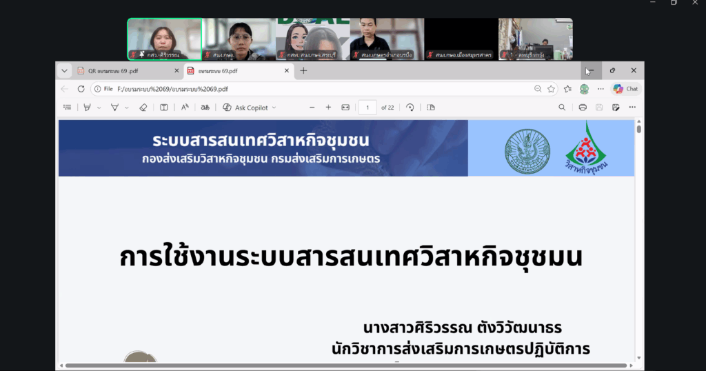 วันที่ 23 ธันวาคม 2568 นางยอดขวัญ สามะ เกษตรอำเภอเขาสวนกวาง พร้อมด้วย นางสาวณิชากร บูรณะกิตินักวิชาการส่งเสริมการเกษตรปฏิบัติการ เข้าร่วมอบรมการใช้งานระบบสารสนเทศวิสาหกิจชุมชน เพื่อสร้างความรู้ ความเข้าใจในการใช้งานระบบสารสนเทศวิสาหกิจชุมชน และชี้แจงแนวทางการดำเนินการต่อทะเบียน ประจำปี 2569 ผ่านระบบประชุมออนไลน์ Zoom Meeting ณ สำนักงานเกษตรอำเภอเขาสวนกวาง จังหวัดขอนแก่น