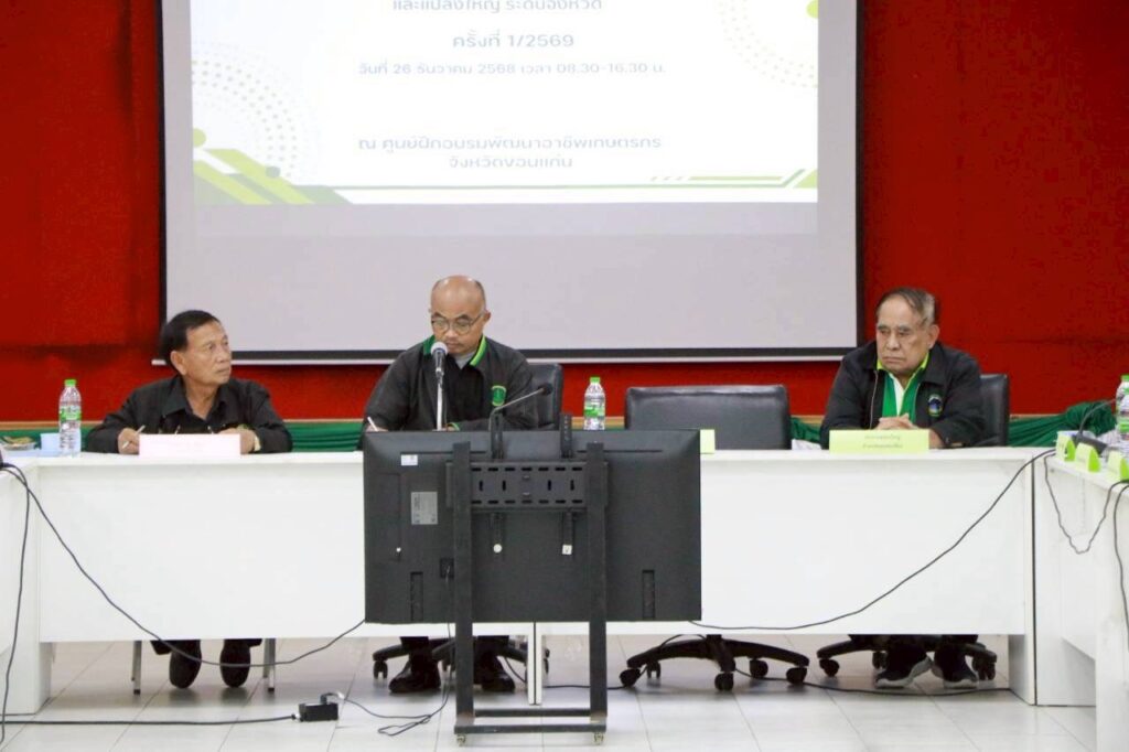 วันที่ 26 ธันวาคม 2568 นางยอดขวัญ สามะ เกษตรอำเภอเขาสวนกวาง มอบหมายให้ นางสาวพรสุดา ไชยโชติ นักวิชาการส่งเสริมการเกษตรปฏิบัติการ พร้อมด้วยประธานคณะกรรมการเครือข่ายแปลงใหญ่ ระดับอำเภอ และประธานคณะกรรมการเครือข่าย ศพก. ระดับอำเภอ เข้าร่วมการประชุมเชื่อมโยงการดำเนินงานคณะกรรมการเครือข่ายแปลงใหญ่และศูนย์เรียนรู้การเพิ่มประสิทธิภาพการผลิตสินค้าเกษตร (ศพก.) ระดับจังหวัด ครั้งที่ 1/2569 เพื่อให้เกิดการทำงานแบบบูรณาการระหว่างเครือข่าย ศพก. และแปลงใหญ่ ให้เกิดการพัฒนาอย่างยั่งยืน ณ ศูนย์ฝึกอบรมและพัฒนาอาชีพเกษตรกรจังหวัดขอนแก่น สำนักงานเกษตรจังหวัดขอนแก่น