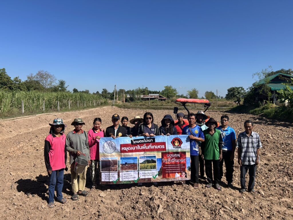 วันที่ 16 ธันวาคม 2568 : นางอมรรัตน์ กุลเลียบ เกษตรอำเภอเมืองขอนแก่น มอบหมายให้นางสาวบุพกร ธรรมโคตร นักวิชาการส่งเสริมการเกษตรชำนาญการ พร้อมด้วยเจ้าหน้าที่สำนักงานเกษตรอำเภอเมืองขอนแก่นและกลุ่มแปลงใหญ่ มันสำปะหลัง หมู่ 14 ตำบลสาวะถี ร่วม จัดกิจกรรมรณรงค์หยุดเผาในพื้นที่เกษตร เพื่อสร้างความตระหนัก ถึงผลกระทบจากการเผาในที่โล่งซึ่งเป็นสาเหตุสำคัญของปัญหาฝุ่นละอองขนาดเล็ก PM2.5 กิจกรรมไถกลบตอซังข้าว และหว่านเมล็ดปอเทือง ณ แปลงนา นายเสาร์ บัวบาน สมาชิกแปลงใหญ่ หมู่ 14 ตำบลสาวะถี อำเภอเมืองขอนแก่น จังหวัดขอนแก่น