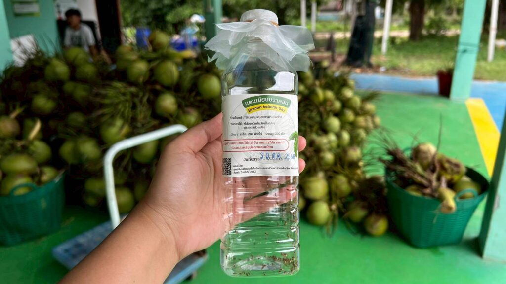 วันที่ 5 พฤศจิกายน 2568 เวลา 09.00 น.นายคมกริช ศาลาน้อย มอบหมายให้ เจ้าหน้าที่กลุ่มอารักขาพืช สํานักงานเกษตรจังหวัดขอนแก่น ร่วมกับเจ้าหน้าที่สำนักงานเกษตรอำเภออุุบลรัตน์ ติดตามการดําเนินงานศูนย์จัดการศัตรูพืชชุมชนบ้านห้วยยาง ตําบลทุ่งโป่ง อําเภออุบลรัตน์ จังหวัดขอนแก่น เพื่อขับเคลื่อนการดําเนินงานของศูนย์จัดการศัตรูพืชชุมชน ในการผลิตขยายแมลงศัตรูธรรมชาติ พร้อมให้คําแนะนําและร่วมวางแผนในการเลี้ยง แตนเบียนบราคอน แมลงหางหนีบสีดํา และแมลงหางหนีบขาวงแหวน ซึ่งเป็นศัตรูธรรมชาติที่ใช้ควบคุมป้องกันศัตรูพืชในพื้นที่ และให้คําแนะนําในการบริหารจัดการ การติดตาม เฝ้าระวัง และประเมินสถานการณ์การระบาดหนอนหัวดําในมะพร้าวที่พบการระบาดในพื้นที่ พร้อมทั้งสนับสนุนแมลงหางหนีบสีดำ และแตนเบียนบราคอน ซึ่งเป็นศัตรูธรรมชาติที่ใช้ควบคุม หนอนหัวดํามะพร้าวให้แก่สมาชิกกลุ่มแปลงใหญ่มะพร้าวน้ําหอมตําบลทุ่งโป่ง โดยแนะนําให้ปล่อยเป็นจุดๆ กระจายทั่วแปลง ในอัตรา 200 ตัวต่อไร่