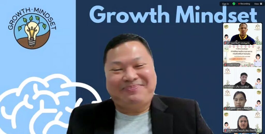 ถึง ๒ ปี สังกัดกอง/สำนักส่วนกลาง และส่วนภูมิภาค จำนวน ๑๐๐ คน วิทยากรและผู้ดำเนินการจัด จำนวน ๑๐ คนผ่านระบบ zoomeeting ณ สำนักงานเกษตรอำเภอพล ตำบลโนนข่า อำเภอพล จังหวัดขอนแก่น