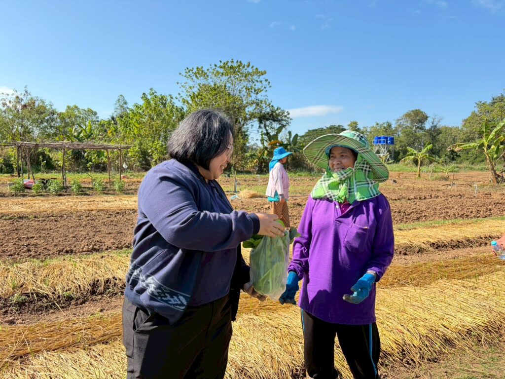 นางสาวลักขณา เมืองแวง เกษตรอำเภอภูผาม่าน พร้อมด้วยนางสาวฤทัยกานต์ แผ้วชำนาญ นักวิชาการส่งเสริมการเกษตรชำนาญการ ลงพื้นที่เยี่ยมเยียนและให้คำแนะนำด้านการผลิตพืชผักในช่วงฤดูหนาวแก่กลุ่มเกษตรกรผู้ปลูกผักบ้านท่าขาม หมู่ที่ 4 ตำบลโนนคอม อำเภอภูผาม่าน จังหวัดขอนแก่น พร้อมทั้งมอบปัจจัยการผลิต ได้แก่ กล้าผัก เมล็ดพันธุ์ผัก และถาดเพาะเมล็ด เพื่อสนับสนุนการเพิ่มประสิทธิภาพการผลิตและสร้างรายได้ให้แก่เกษตรกรในพื้นที่