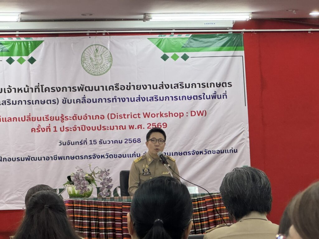 วันจันทร์ ที่ 15 ธันวาคม 2568 เวลา 09.00 น. นายจงรัก ฮาดภักดี เกษตรอำเภอซำสูง พร้อมด้วยเจ้าหน้าที่สำนักงานเกษตรอำเภอซำสูง เข้าร่วมการเวทีแลกเปลี่ยนเรียนรู้ระดับอำเภอ (District Workshop : DW) ครั้งที่ 1 ประจำปีงบประมาณ พ.ศ. 2569 ตามระบบส่งเสริมการเกษตร (T&V System) โดยมีวัตถุประสงค์เพื่อให้เจ้าหน้าที่ได้แลกเปลี่ยนเรียนรู้ ชี้แจงแนวทางปฏิบัติงาน และร่วมรับฟังการชี้แจงโครงการส่งเสริมการเกษตร ประจำปีงบประมาณ 2569 และการขับเคลื่อนโครงการตามตัวชี้วัด การขับเคลื่อน”11 Quick Win” จังหวัดขอนแก่น และกิจกรรม Workshop ภายใต้หัวข้อ “แนวทางการจัดการเศษวัสดุเหลือใช้ทางการเกษตรเพื่อสร้างรายได้ ลดการเผา อย่างยั่งยืน” การจัดเวทีในครั้งนี้ มุ่งหวังให้เจ้าหน้าที่ได้รับองค์ความรู้ใหม่ๆ เพื่อนำกลับไปพัฒนางานในพื้นที่ ให้บริการเกษตรกรได้อย่างมีประสิทธิภาพ และร่วมกันขับเคลื่อนภาคการเกษตรของจังหวัดขอนแก่นให้มีความเข้มแข็งต่อไป โดยมีนายยุทธพร พิรุณสาร รองผู้ว่าราชการจังหวัดขอนแก่น ให้เกียรติเป็นประธานในพิธีเปิด พร้อมเยี่ยมบูธนิทรรศการ การขับเคลื่อน”11 Quick Win”