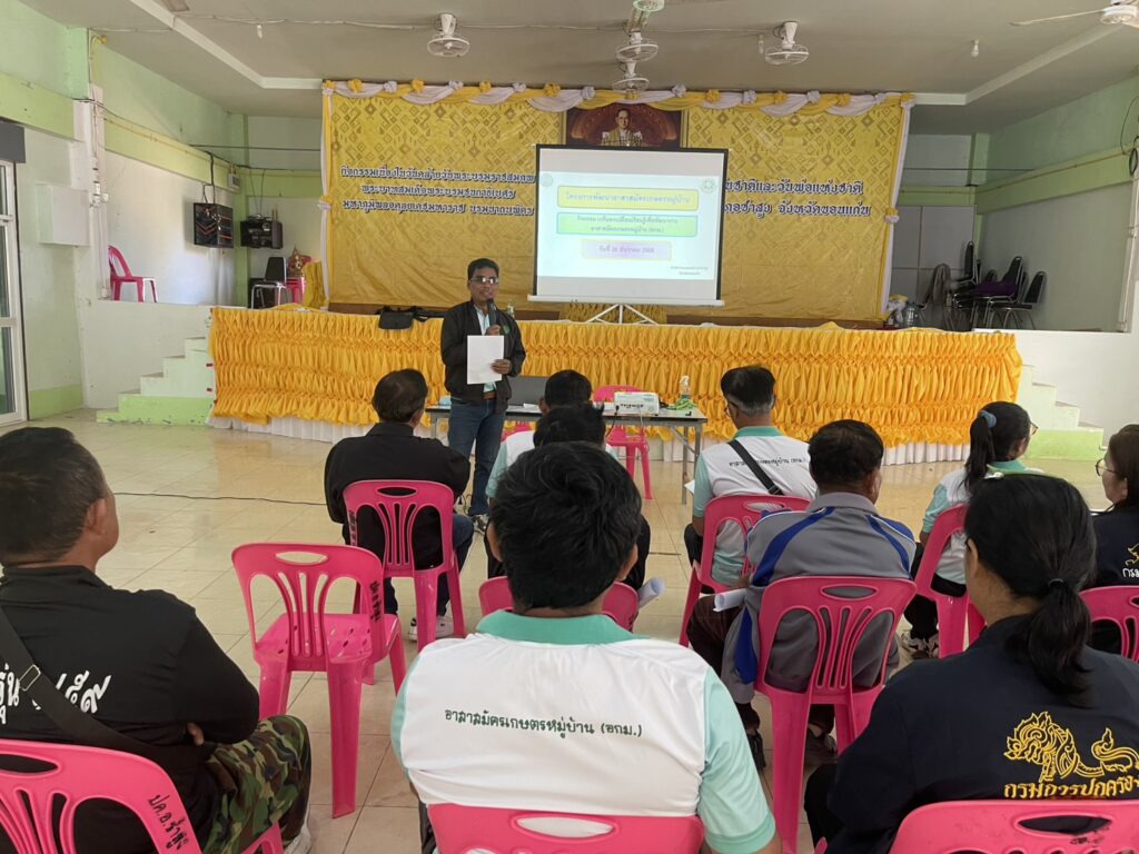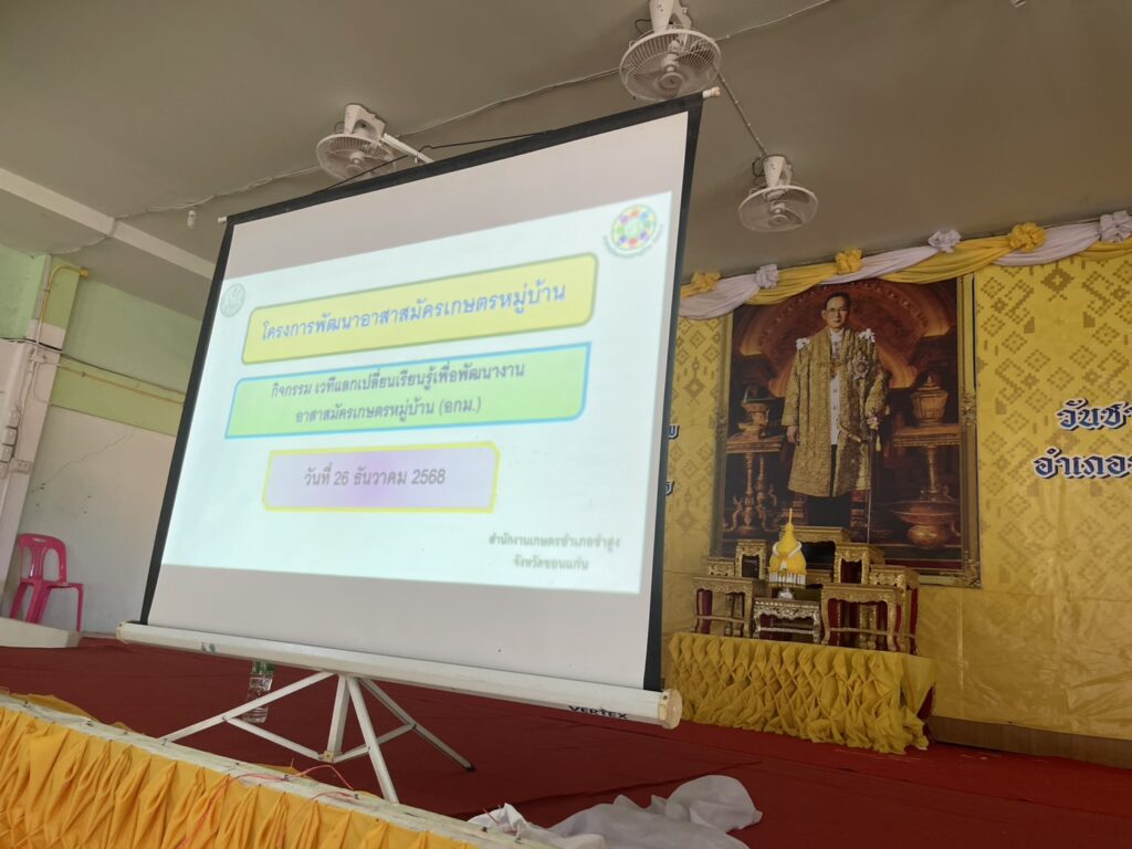 นายจงรัก ฮาดภักดี เกษตรอำเภอซำสูง มอบหมายให้นางสาวนภาพร ทองศรี นักวิชาการส่งเสริมการเกษตรชำนาญการ โครงการพัฒนาอาสาสมัครเกษตรหมู่บ้าน (อกม.) กิจกรรม เวทีแลกเปลี่ยนเรียนรู้เพื่อพัฒนาอาสาสมัครเกษตรหมู่บ้าน (อกม.) ประจำปีงบประมาณ 2569 เพื่อบรมให้ความรู้ พัฒนาทักษะและสมรรถนะในการเป็นเกษตรกรผู้นำเชิงอาสา จำนวน 10 ราย