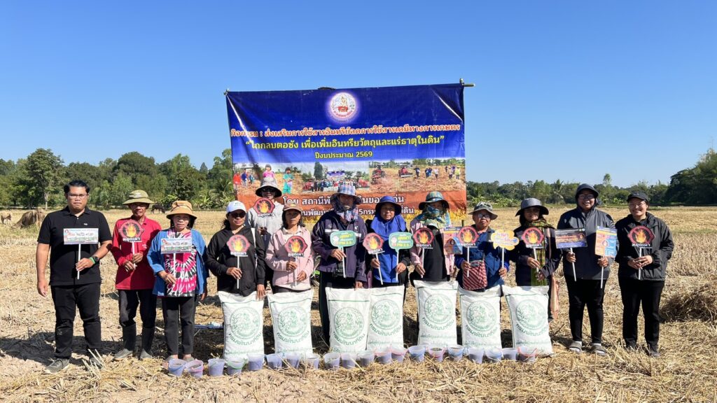 วันที่ 2 ธันวาคม 2568 นายวิทยา ศรีภักดี นักวิชาการส่งเสริมการเกษตรปฏิบัติการ และนางสาวศศิเกตุ คีรีรักษ์ นักวิชาการส่งเสริมการเกษตรปฏิบัติการ ร่วมกับสถานีพัฒนาที่ดินจังหวัดขอนแก่น กลุ่มผลิตเมล็ดพันธุ์ข้าวคุณภาพ ตำบลทุ่งโป่ง และกลุ่มผลิตเมล็ดพันธุ์ปอเทืองคุณภาพในฤดูข้าวนาปรัง ตำบลทุ่งโป่ง จัดกิจกรรมรณรงค์สร้างการรับรู้ไม่เผาในพื้นที่การเกษตร เพื่อสร้างความตระหนักรู้ถึงผลกระทบจากการเผาในพื้นที่การเกษตร ซึ่งเป็นสาเหตุสำคัญของปัญหาฝุ่นละอองขนาดเล็ก PM2.5 ที่ส่งผลกระทบต่อสภาพแวดล้อมและสุขภาพของประชาชน โดยภายในงานมีกิจกรรมการรณรงค์การลดการเผา การไถกลบตอซัง และหว่านเมล็ดพันธุ์ปอเทือง กิจกรรมในครั้งนี้สะท้อนถึงความตั้งใจร่วมกันของทุกภาคส่วนในการแก้ไขปัญหาการเผาในพื้นที่การเกษตร การลดมลพิษทางอากาศอย่างยั่งยืน และสร้างสิ่งแวดล้อมที่ดีขึ้นให้กับคนรุ่นต่อไป ณ แปลงนา นางทองเยื้อน หนองผือ เกษตรกรสมาชิกกลุ่มผลิตเมล็ดพันธุ์ปอเทืองคุณภาพในฤดูข้าวนาปรัง ตำบลทุ่งโป่ง อำเภออุบลรัตน์ จังหวัดขอนแก่น