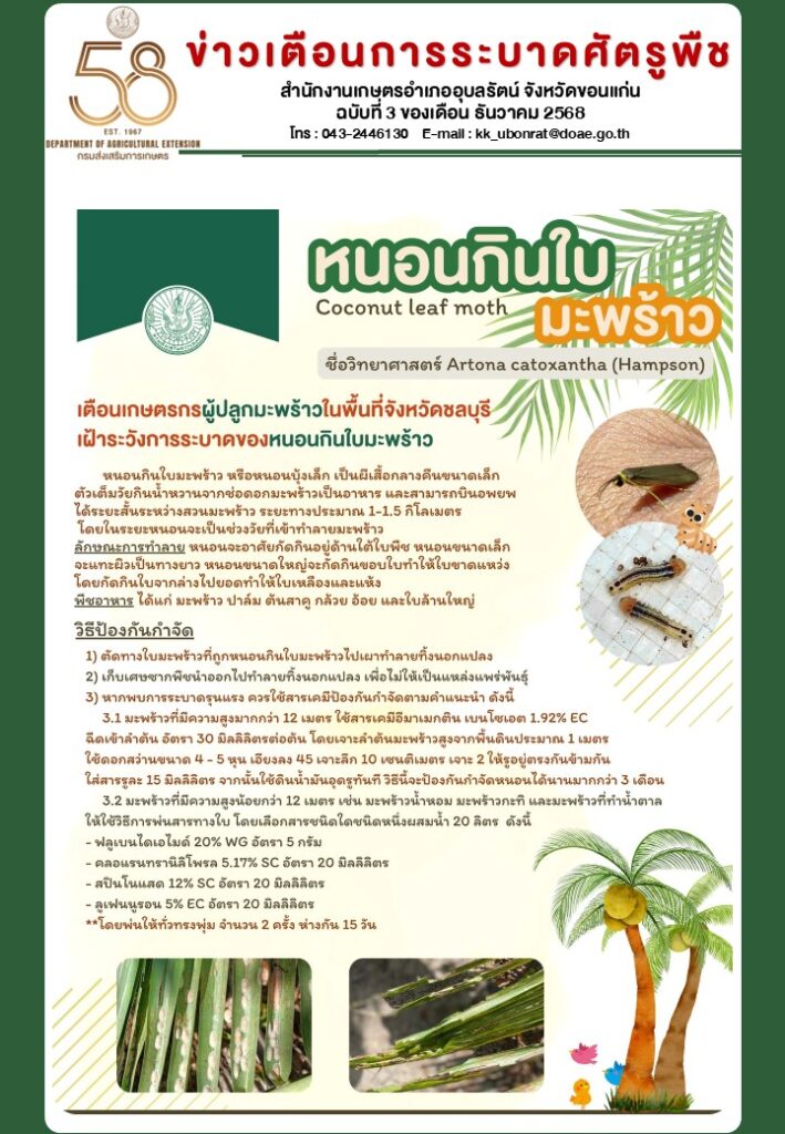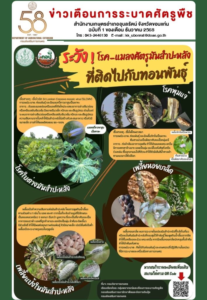 แจ้งเตือนการระบาดศัตรูพืช ประจำเดือน ธันวาคม 2568By admin_4008 / 25 ธันวาคม 2025 #กรมส่งเสริมการเกษตร #สำนักงานเกษตรจังหวัดขอนแก่น #สำนักงานเกษตรอำเภออุบลรัตน์