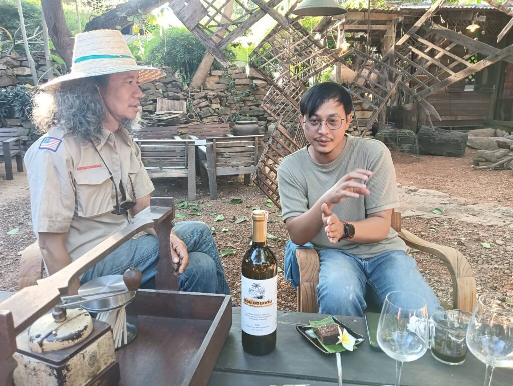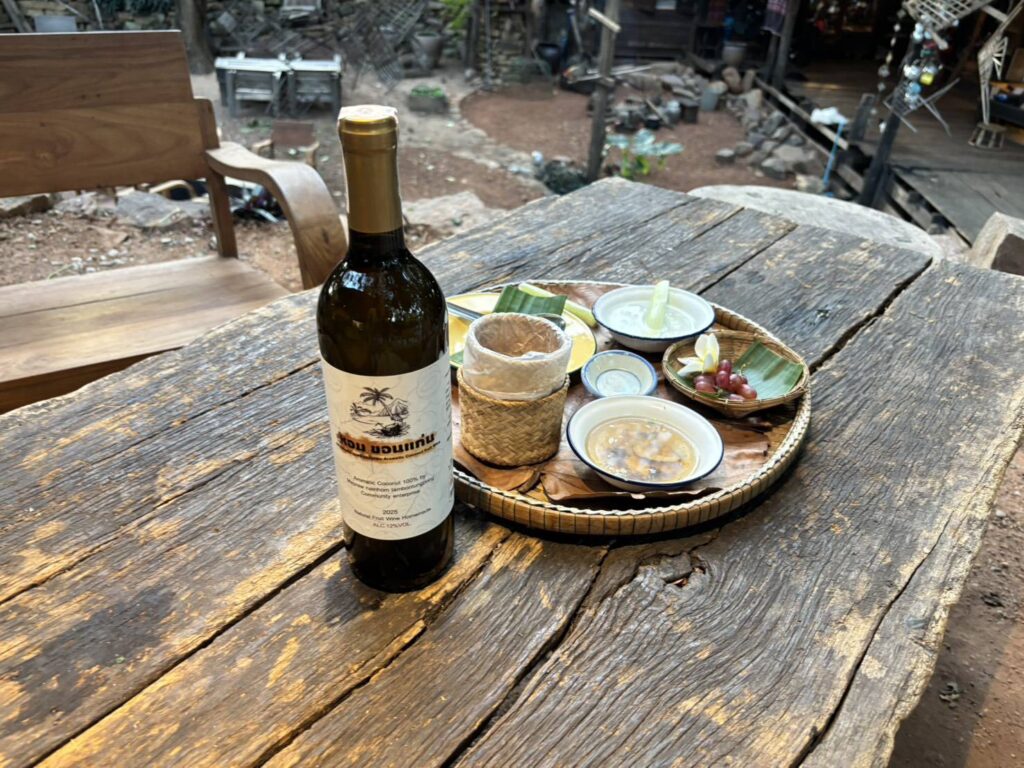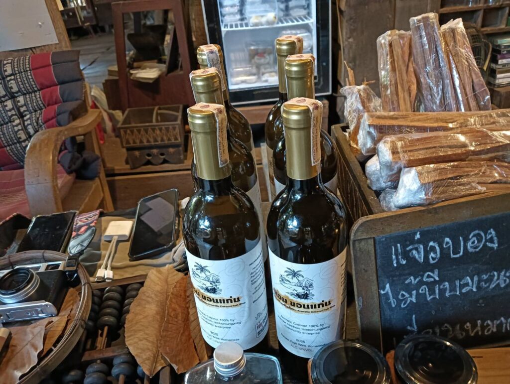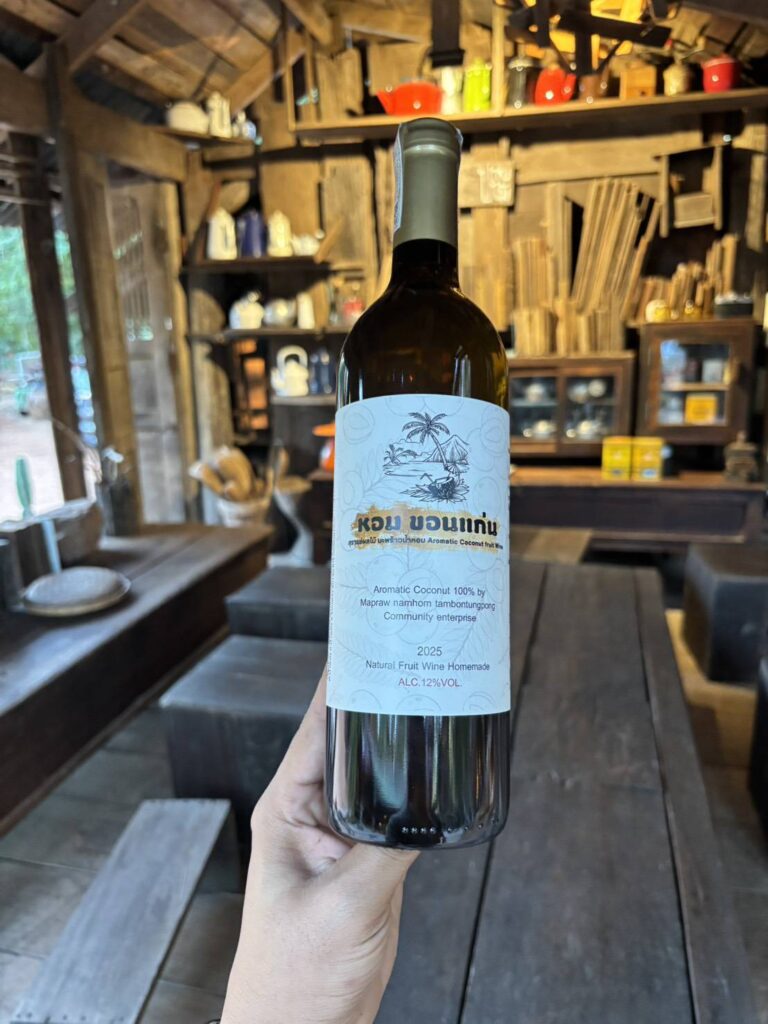 วันที่ 26 ธันวาคม 2568 นางรัญดา คำสมหมาย นักวิชาการส่งเสริมการเกษตรชำนาญการ รักษาราชการแทนเกษตรอำเภออุบลรัตน์ มอบหมายให้ นายวิทยา ศรีภักดี นักวิชาการส่งเสริมการเกษตรปฏิบัติการ ร่วมกับเจ้าหน้าที่สถาบันส่งเสริมและพัฒนากิจกรรมปิดทองหลังพระ สืบสานแนวพระราชดำริ ตำบลทุ่งโป่ง ผสานความร่วมมือกับบ้านปายไม้ เขื่อนอุบลรัตน์ ซึ่งเป็นร้านคาเฟ่และร้านอาหารกึ่งแหล่งเรียนรู้วิถีธรรมชาติและการท่องในบริเวณเขื่อนอุบลรัตน์ ที่เป็นหนึ่งในร้านที่เป็นที่รู้จักของนักท่องเที่ยว ยกระดับผลิตภัณฑ์กลุ่มวิสาหกิจชุมชนกลุ่มผู้ปลูกมะพร้าวน้ำหอมตำบลทุ่งโป่งสู่สินค้าเกษตรมูลค่าสูง “ไวน์มะพร้าวน้ำหอมทุ่งโป่ง” ในการสร้างอัตลักษณ์สินค้าอุบลรัตน์ จังหวัดขอนแก่น เพื่อความยั่งยืนของชุมชน “หอมขอนแก่น ความหอมหวานจากดินทราย สู่มะพร้าวคุณภาพ เพื่อส่งต่อความสุข และรอยยิ้มจากผู้ปลูกถึงมือคุณ” ซึ่งการแปรรูปไวน์มะพร้าวน้ำหอมเป็นการแก้ปัญหามะพร้าวราคาถูกในช่วงที่มะพร้าวล้นตลาด และยังเป็นการเพิ่มมูลค่าสินค้าจากมะพร้าวสดลูกละ 25 บาท (ต้นทุนมะพร้าว 62.5 บาทและต้นทุน OEM 325 บาทต่อขวด) ได้เป็น 690 บาท คิดเป็นร้อยละ 56 นอกจากนี้กลุ่มวิสาหกิจชุมชนฯ ยังชูไวน์มะพร้าวน้ำหอม หอมขอนแก่นเป็นเพชรยอดมงกุฏของมะพร้าวน้ำหอมทุ่ง โป่งที่สร้างเรื่องราว สร้างการรับรู้ ดึงดูดนักท่องเที่ยว และเชื่อมโยงให้เป็นที่รู้จักสิ้นค้าอื่นๆ ในพื้นที่ทุ่งโป่งอีกด้วย