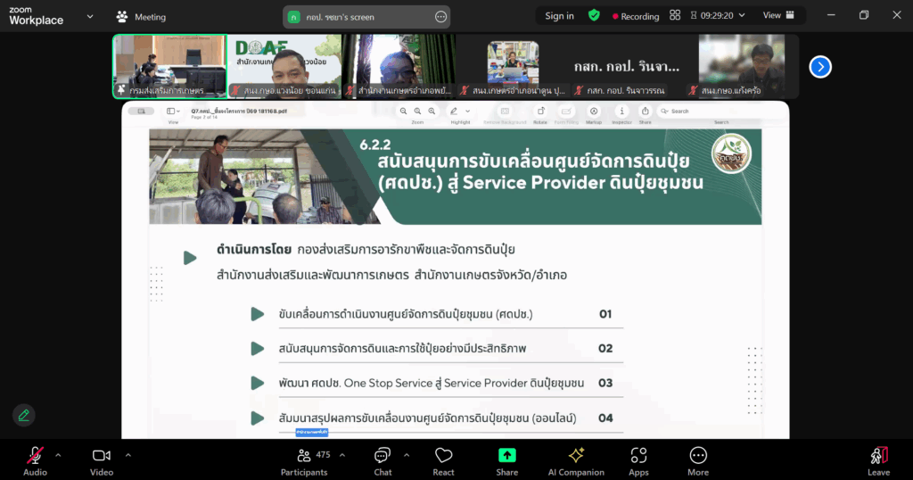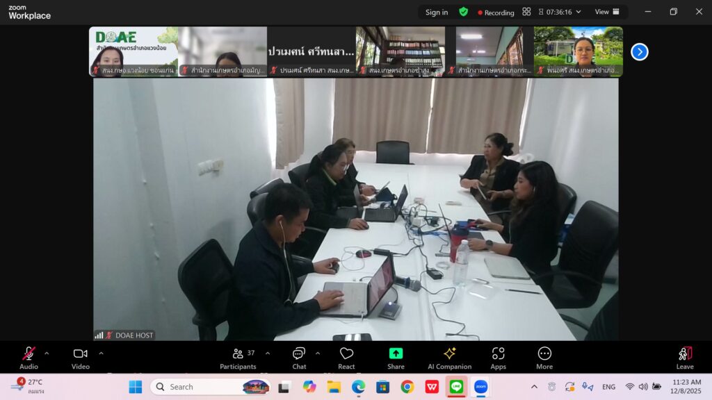 วันที่ 8 ธันวาคม 2568 เวลา 08.30 น. นายทัดชัย บุญไสย์ นักวิชาการส่งเสริมการเกษตรชำนาญการรักษาราชการแทน เกษตรอำเภอแวงน้อย พร้อมด้วย นางสุจิตรา ประภาการ นักวิชาการส่งเสริมการเกษตรปฎิบัติการ เข้าร่วมประชุมเจ้าหน้าที่ผู้รับผิดชอบงานกลุ่มส่งเสริมและพัฒนาเกษตรกร ประจำปีงบประมาณ พ.ศ. 2569 ผ่านระบบ Zoom Meeting เพื่อรับฟังชึ้แจงแนวทางการปฏิบัติงานโครงการส่งเสริมการเกษตร ประจำปีงบประมาณ พ.ศ. 2569 และกำหนดแนวทางการขับเคลื่อนงานในแต่ละอำเภอให้เป็นไปในทิศทางเดียวกัน ณ สำนักงานเกษตรอำเภอแวงน้อย อำเภอแวงน้อย จังหวัดขอนแก่น