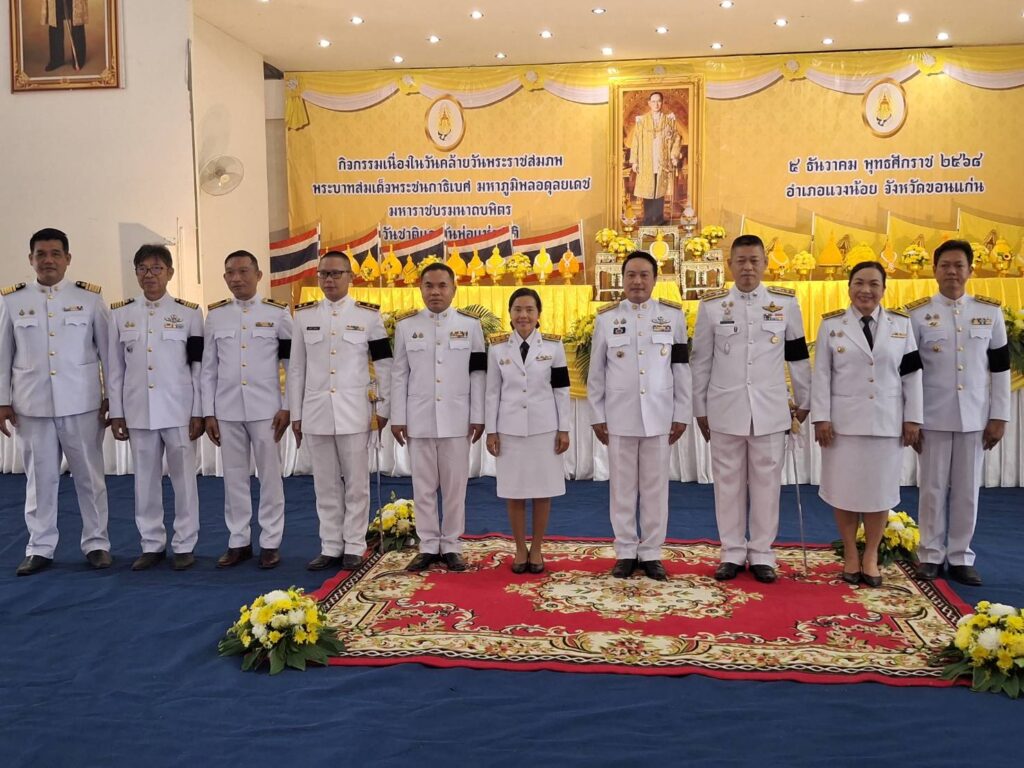 วัวันที่ 5 ธันวาคม 2568 เวลา 07.00 น. นายทัดชัย บุญไสย์ นักวิชาการส่งเสริมการเกษตรชำนาญการรักษาราชการแทน เกษตรอำเภอแวงน้อย พร้อมด้วยเจ้าหน้าที่สำนักงานเกษตรอำเภอแวงน้อย ร่วมกิจกรรมเนื่องในวันคล้ายวันพระบรมราชสมภพพระบาทสมเด็จพระบรมชนกาธิเบศร มหาภูมิพลอดุลยเดชมหาราช บรมนาถบพิตร วันชาติ และวันพ่อแห่งชาติ 5 ธันวาคม 2568 มีกิจกรรม ดังนี้ พิธีทำบุญตักบาตรถวายพระราชกุศล และพิธีวางพานพุ่มดอกไม้ โดยมี นายกานต์ ทองเสน นายอำเภอแวงน้อย เป็นประธานพิธีในครั้งนี้ ณ หอประชุมอำเภอแวงน้อย อำเภอแวงน้อย จังหวัดขอนแก่น