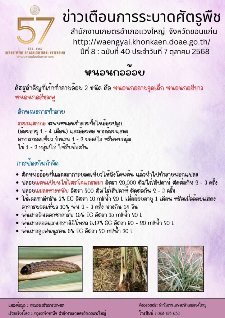 ข่าวเตือนการระบาดหนอนกออ้อยBy admin_4013 / 22 ธันวาคม 2025 ปีที่ 8 : ฉบับที่ 40 ประจำวันที่ 7 ตุลาคม 2568